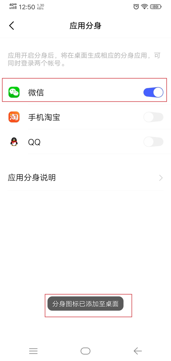 第四步,接着系统会为我们在桌面上创建微信分身的应用图标。