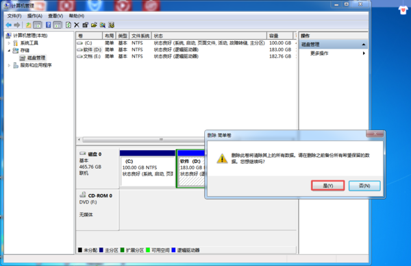 第四步,然后系统会弹出【删除D盘】的提示信息,点击【是】按钮。