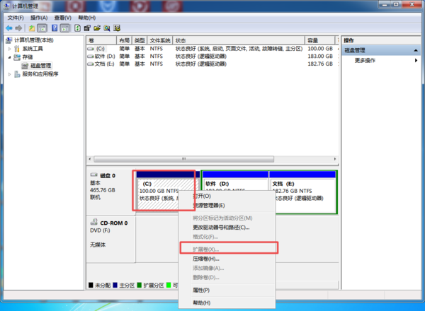 第五步,接着我们在【磁盘管理】的窗口当中,鼠标右键单击【C盘】,然后在弹出的选项中选择【扩展卷】选项。