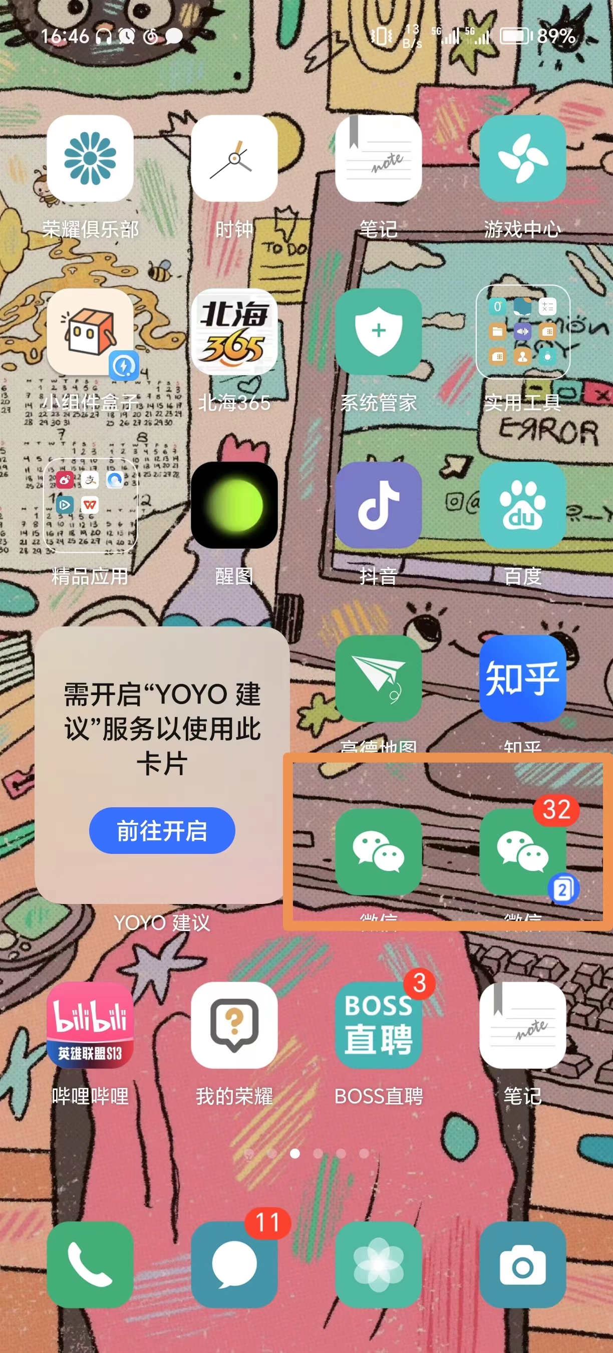 步骤5:设置完成后,回到手机桌面,我们就可以看到两个微信图标,这样可以同时登陆两个微信账号。