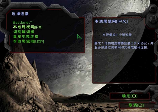 3.然后选择本地局域网(IPX)或者本地局域网(UDP),建议选择前者,需要在电脑上安装IPX协议。