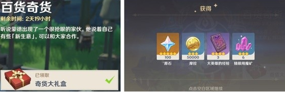 6,如果你已经获得了奇货大礼盒,但是活动还没有截止,那么仍然可以每天向NPC立本提交当天所需要的物品材料来领取奖励哦,千万不要错过。