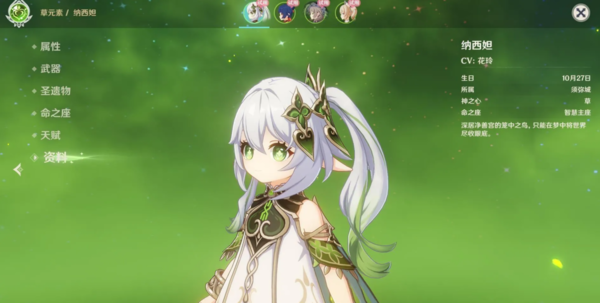 4,圣遗物的副词条主要追精通以及双暴,还有大攻击,娜西妲面板最好维持在八百精通、四十五暴击、一百四爆伤以上,这样的面板既有伤害还能兼顾辅助作用。