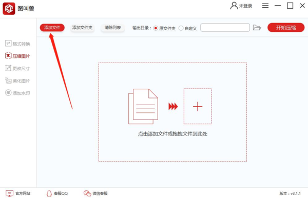 第二步,接着我们在软件界面的顶部,找到【添加文件】按钮,然后将需要处理的图片添加进来。