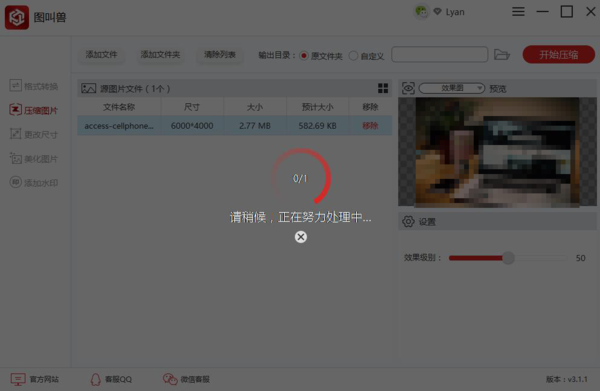 第六步,最后我们稍等一会儿,软件就会进行图片的压缩,此时我们耐心等待一会儿即可。