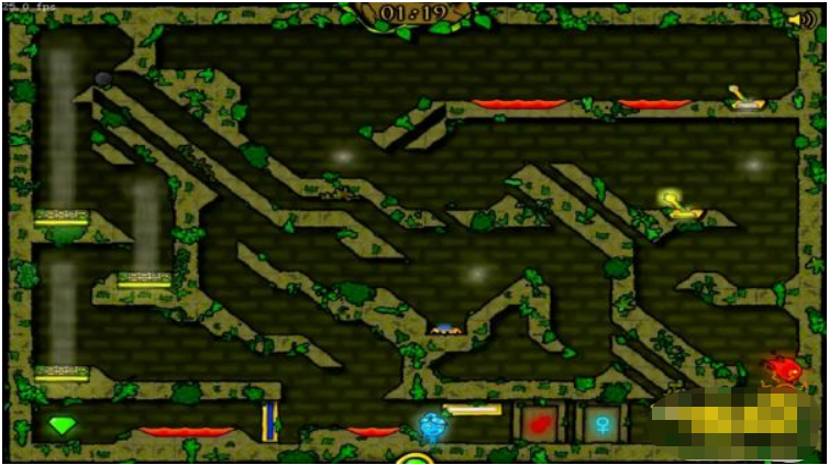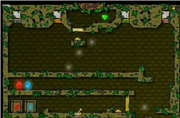 2、按“W、A、D、S”控制水女孩移动:“A、S”左右移动,“D”跳跃。