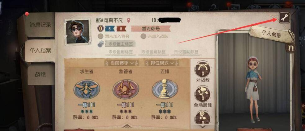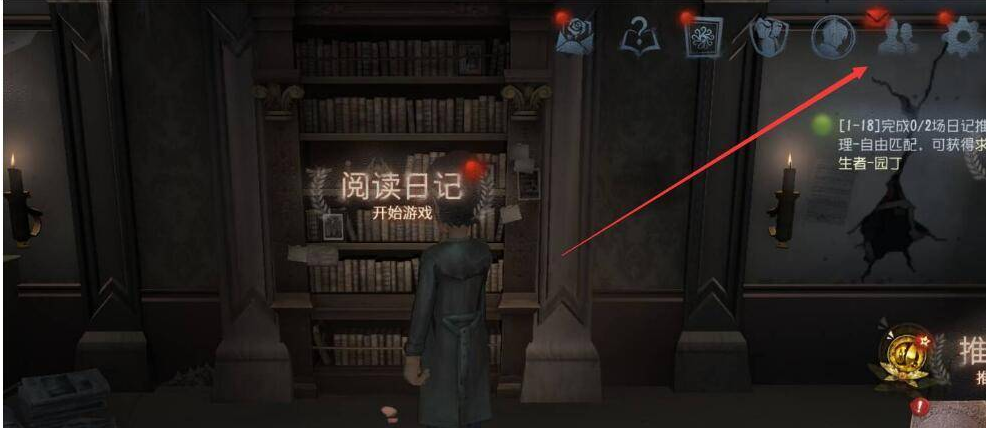 1、玩家打开第五人格游戏后,点击右上角进入个人主页。
