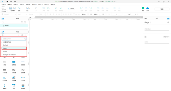 第三步,然后在弹出的元件库中选择【Flow】,接着我们就可以开始流程图的绘制了。