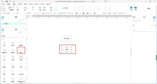 第五步,菱形代表判断的条件,我们从元件库中拖入一个菱形,然后双击编辑它的文字。