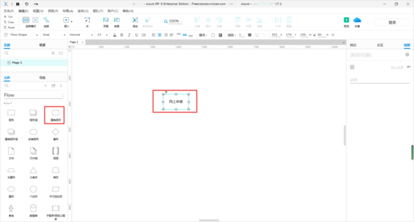 第四步,而在Flow元件库当中,圆角矩形代表流程图的开始,此时我们在元件库中拖入一个【圆角矩形】,然后双击编辑所需文字。
