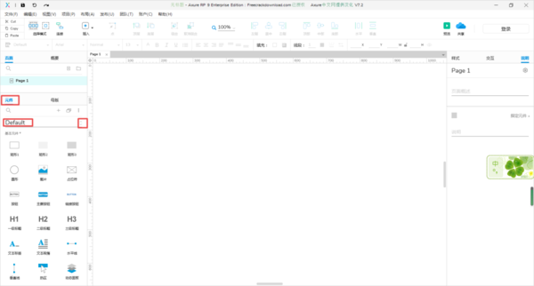 第二步,进入到新建的空白界面当中后,我们在软件界面的左侧,找到【元件】一栏下方的【Default】选项,然后点击其右侧的向下的箭头。