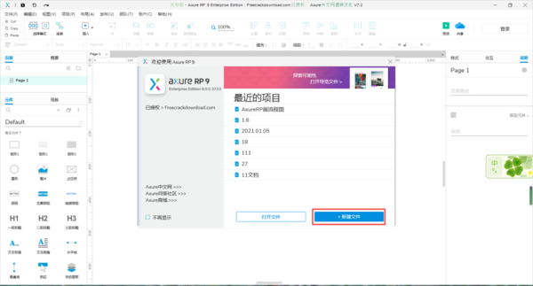 第一步,在电脑上找到AxureRP程序,然后双击打开,接着在软件弹出的窗口中,选择【新建文件】按钮。