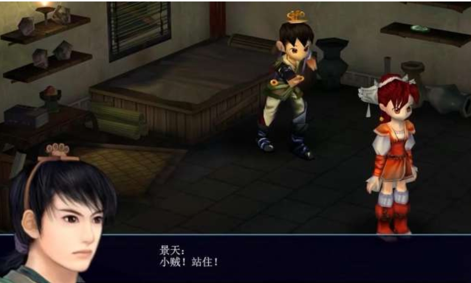 景天夜寝时,闻有开门声,竟误将闯入的唐家堡千金唐雪见视为贼人,雪见乃唐家堡现任掌门的孙女,景天所任事的永安当即是唐家的物业。为证实身份,雪见出示唐家密传的毒蒺藜暗器,此时,地震来袭(动画),景天为暗器所误伤,景天识得雪见所摔破的茶壶乃海棠红紫砂壶,遂以修复茶壶为条件,与雪见交换解药,并约定天亮后于城南竹林碰头交换。雪见走后,景天即将茶壶修复,随即上床睡觉。