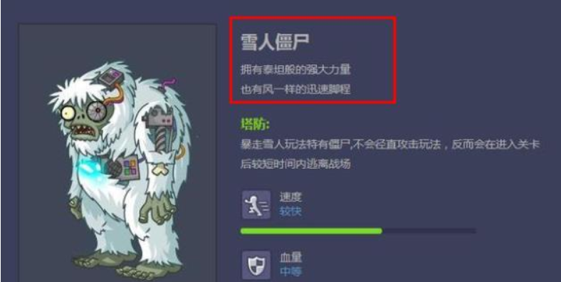雪人僵尸拥有泰坦般的强大力量,也有风一样的迅速脚程塔防,暴走雪人玩法特有僵尸,不会径直攻击玩法,反而会在进入关卡后较短时间内逃离战场。