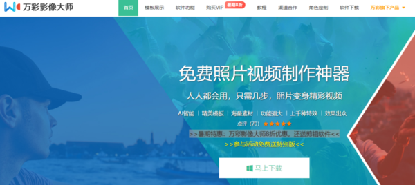 万彩影像大师也是一款出色的电子相册制作软件,这款软件的操作步骤也是非常简单,选择模板→导入素材→编辑→发布分享,简单4步就可以完成电子相册的制作,而且万彩影像大师上面的功能也很丰富,这让作为用户的我们,在自定义电子相册方面可以做出更多的花样!