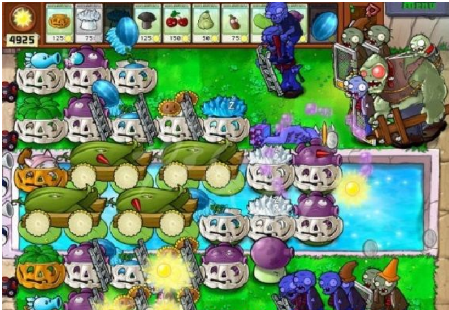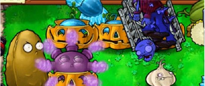2、 当梯子上有小僵尸时,它们不再啃食南瓜头,而是沿着梯子前进,可以轻松被冰冻西瓜投手和忧郁蘑菇直接击杀。