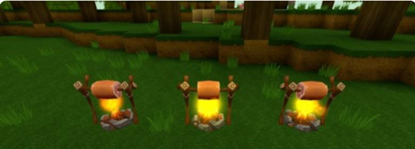 5、将生肉放在篝火在上烤,注意不要被烫伤。