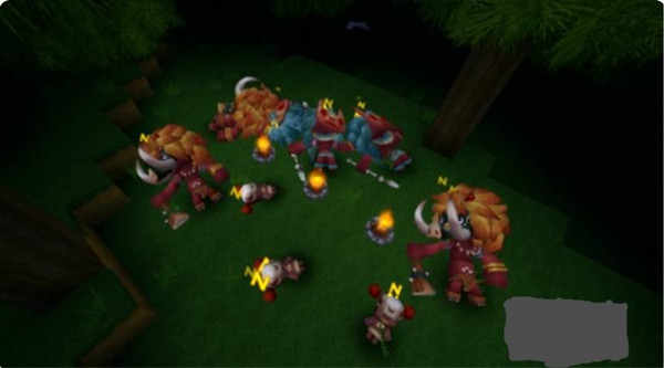 3、利用火把将草地上的3个篝火全部点燃。