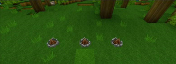 2、并在夜晚的时候,将3个篝火在草地上。