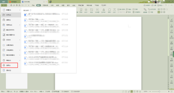 第二步,进入到文档界面当中后,我们点击【文件】选项,然后在其下方的选项中,选择【选项】功能,并点击进入。