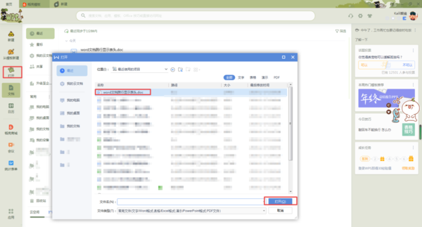 第一步,在电脑的桌面上找到WPS软件,然后双击打开,接着将需要进行处理的文档也同时打开。