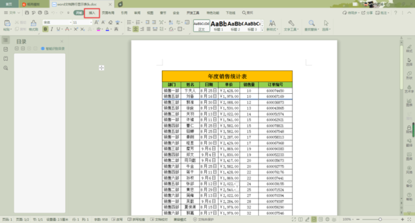 第二步,文档打开好以后,我们在软件界面的顶部,找到【插入】选项卡,并点击进入。