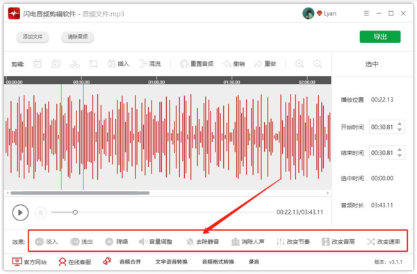 小编要推荐的第三款歌曲剪辑软件为风云音频处理大师,它是一款功能实用且高效易用的音频处理软件,支持M4A转MP3、FLAC转MP3、WMA转MP3、WAV转MP3、音频剪切、音频合并等多种音频处理功能,专业又全面,非常值得使用。