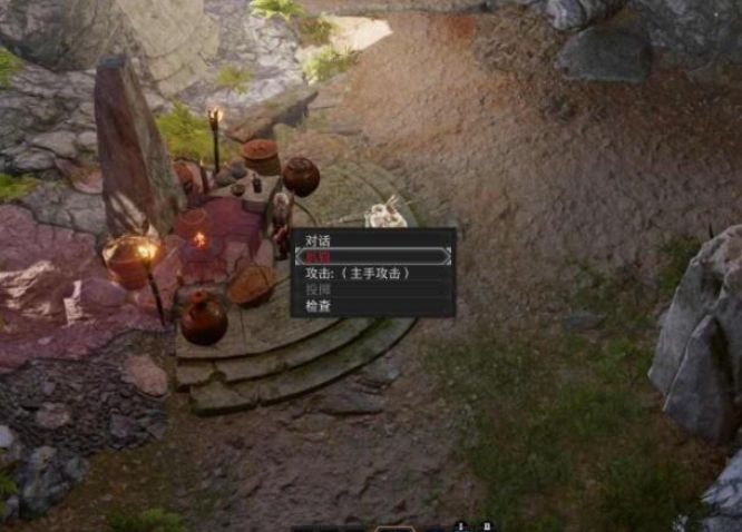 操作一:选择一名具有扒窃技能的职业(如盗贼),并确保该角色拥有较高的敏捷属性。在与NPC交流时,选择“扒窃”按钮来进行盗窃。