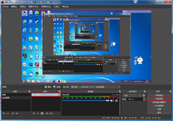 第十三步,接着我们选中【来源】面板当中的源,然后点击控件面板中的【开始录制】功能,然后我们启动想要录屏的游戏,或开始操作你的电脑,就可以开始录屏了。