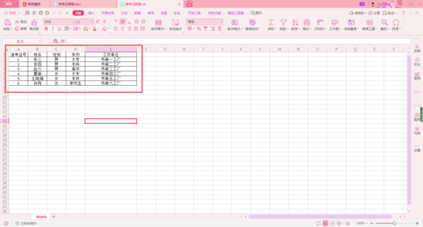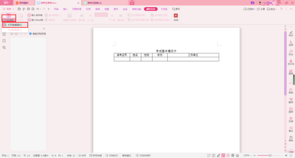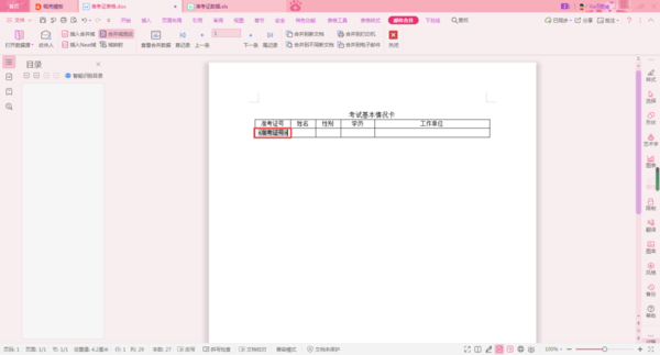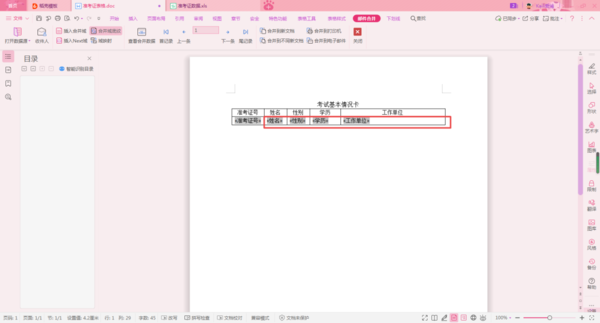 第十一步,最后WPS就会弹出一个新的word文档界面,而此界面当中就会包含了所有准考人员信息的一个准考证表格了,此时我们直接打印出来就可以进行准考证文件的下发了。