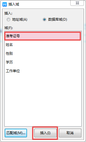 第七步,然后软件就会弹出【插入域】的窗口,在此窗口当中,我们选择此数据区域所对应的数据源,然后点击【插入】按钮。