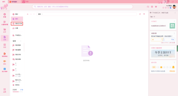 第二步,进入到我的云文档界面当中后,我们选中需要进行分享的云文件。