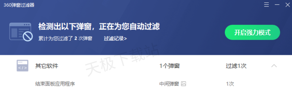 2.在弹窗过滤界面我们可以“开启过滤”,也可以打开“强力模式”。