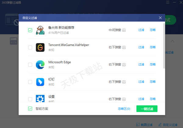 3.点击右下角“自定义过滤”,还可以自定义软件弹窗。