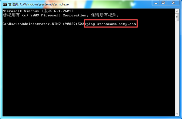 第三步,接着我们在弹出的【命令提示符】窗口当中,输入【ping?steamcommunity.com】命令,然后按下回车键。