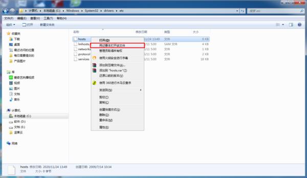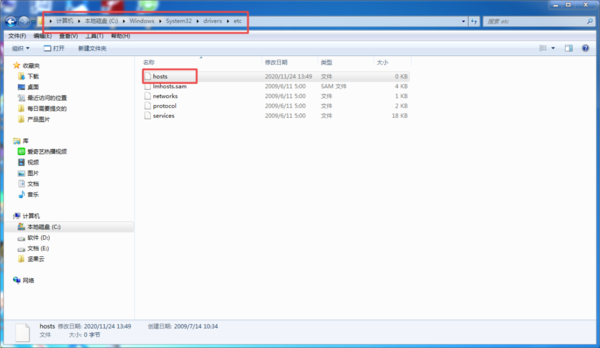 第五步,接着我们打开电脑的系统盘,然后定位到电脑的【C:\Windows\System32\drivers\etc】文件夹当中,然后在文件夹当中我们找到hosts文件。