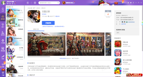 截止目前,2024年2月QQ游戏大厅上线了1个策略新游,游戏的名字为——三国之怒,该游戏在2月12日上线,游戏具备正统的三国策略玩法,更有酷炫神兽神技,轻松感受不同的三国战场。