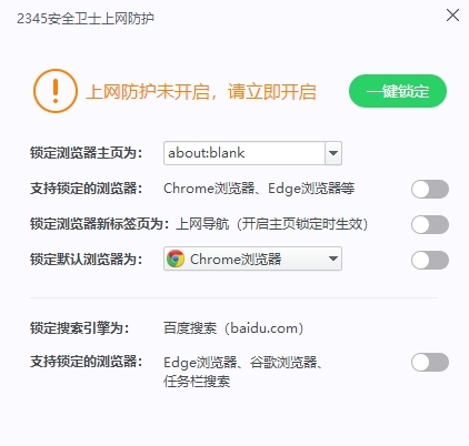 ②然后,我们可以在此设置默认浏览器、空白页等内容,点击上方【锁定】完成设置;