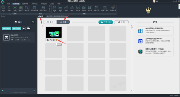 进入到浩辰CAD看图王的起始页页面当中,然后点击【最近】选项右侧的【收藏】选项,在这里,大家就可以找到自己已经收藏过的图纸内容了。