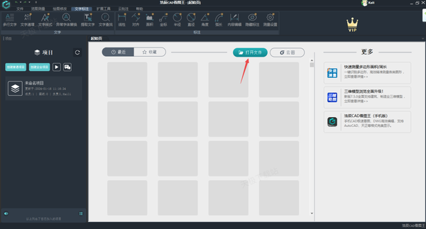 第一步,启动电脑端的浩辰CAD看图王软件,然后点击【打开文件】按钮,接着将想要进行收藏的工程装修图纸用该软件打开。