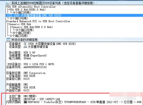 工具检测到的对我们有用的U盘信息如红框部分。
