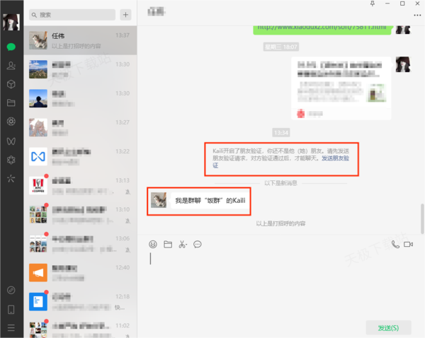 打开电脑端的微信,找到想要进行分辨的好友,然后向朋友发送信息,如果消息发出后提示【你不是对方的朋友,请先向朋友发送朋友验证申请】的消息时,说明好友已经把自己删除了。