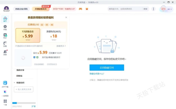 1.开通会员服务:百度网盘提供了不同等级的会员服务,升级至VIP会员可以获得更高的下载速度上限,这是最直接有效的方式,而且近期百度网盘还在搞活动,仅需5.99元即可获得7天百度网盘超级会员。