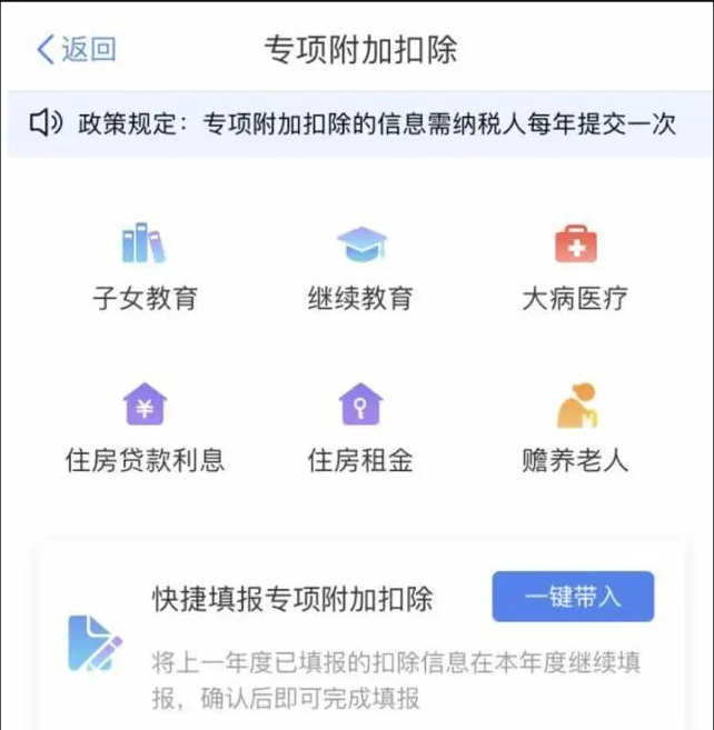 4、填写专项附加扣除信息或者选择一键带入快捷填报;