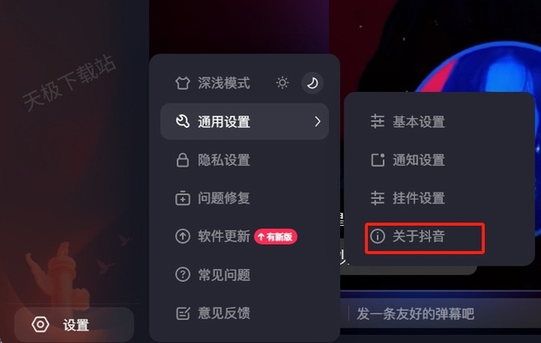 打开抖音电脑版,点击左下角的设置选项。在设置菜单中,选择“通用设置”,然后找到并点击“关于抖音”,在“关于抖音”四个字下,您可以看到当前使用的抖音版本号。