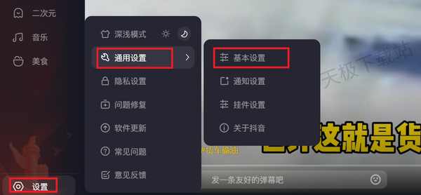 1.打开抖音客户端,依次点击右下角设置-通用设置-基本设置。
