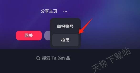3.这时,会弹出一个下拉菜单,我们点击拉黑就可以了。