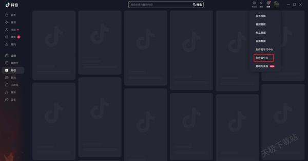 1.打开抖音电脑版,然后再页面右上角找到并点击“创作者中心”。
