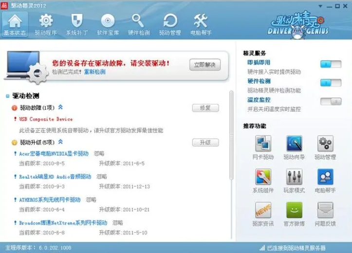 驱动精灵:驱动库更新较慢,对一些较新的设备支持不够完善。