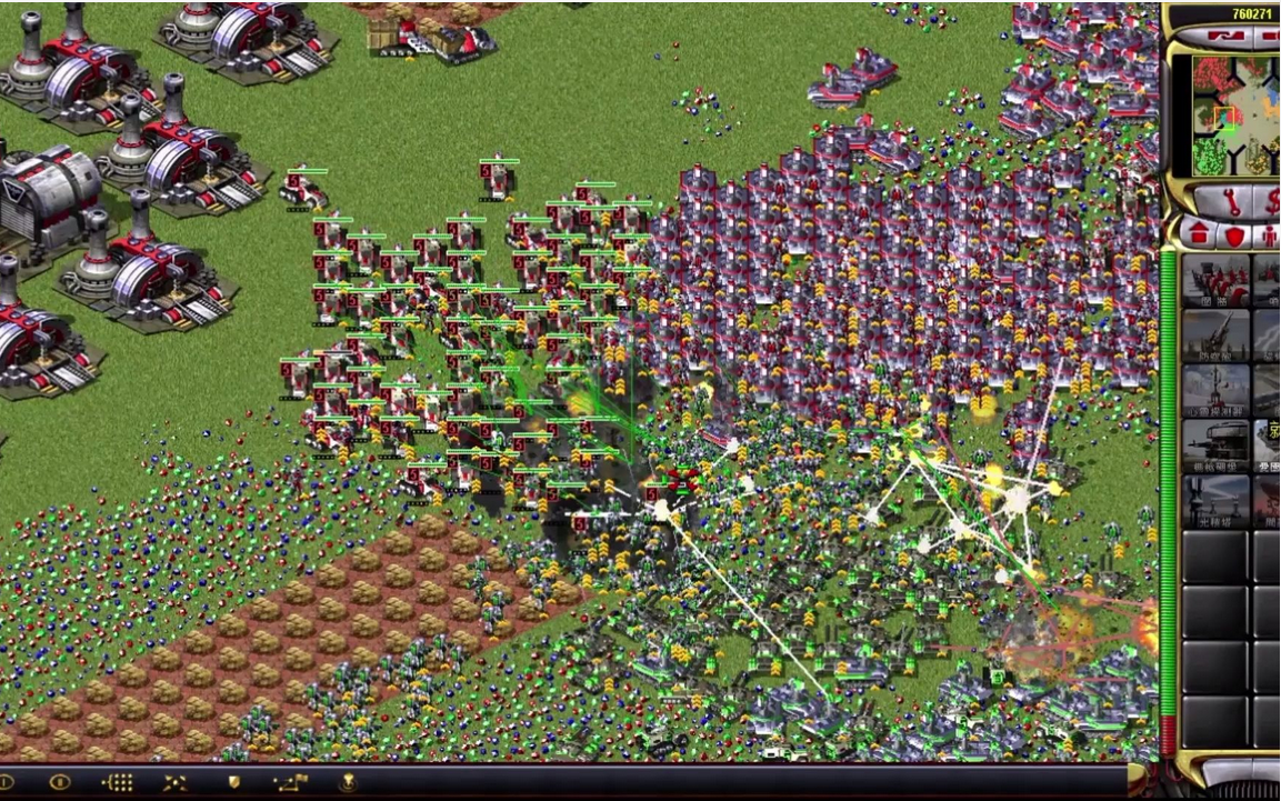 在点击图标的同时一直按住shift。当想要建造大量坦克或者步兵的时候,可以按住shift再 点击要生产的单位,这样点击一下相当于自动生产7个单位,兵营建多了,生产士兵就快 记住方法,然后五六个兵营都差不多了。